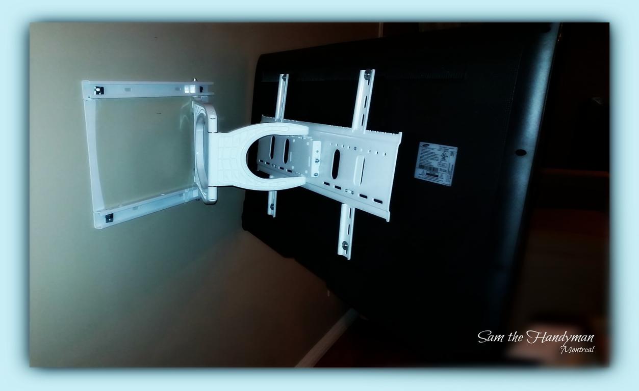 LCD TV wall mount installation on an articulating/ full motion bracket with or without wires concealing service.